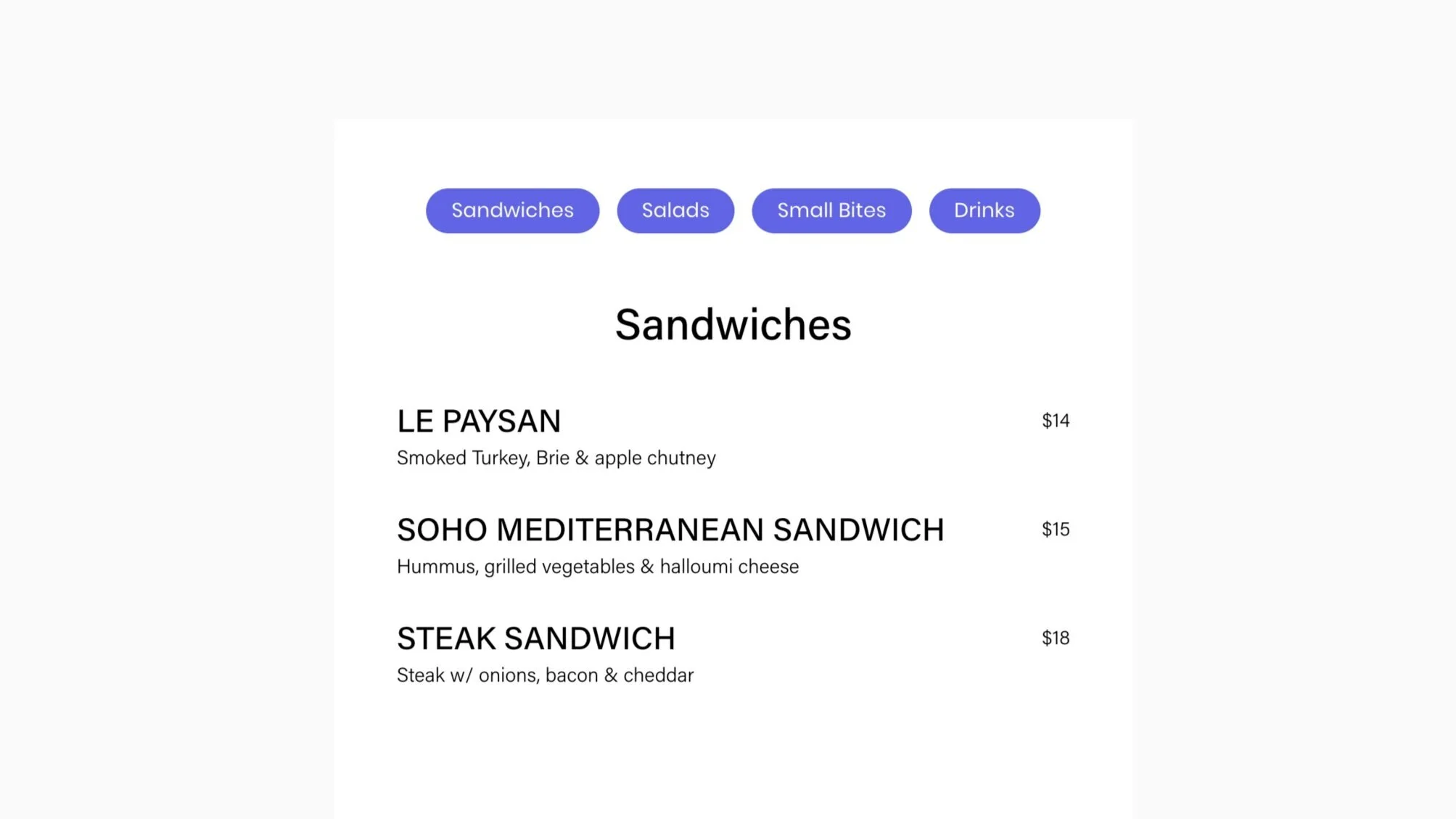 // Menu Block Links - Pill Style // .menu-block .menu-selector label { display: inline-block; margin: 5px; background: #6061ED; padding: 10px 20px; border-radius: 20px; color: white; text-decoration: none !important; }