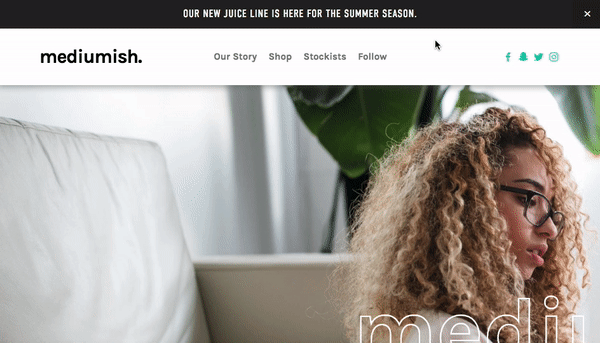 Change the color of the announcement bar when hovered over. This plugin uses css editor and works with all template families.