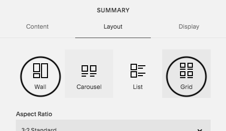 Layout Tab: Select either the wall or grid layout option and adjust your layout settings to your liking.